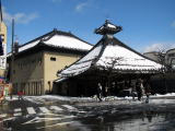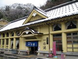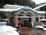 今をさかのぼること1,400年前、舒明天皇の時代にコウノトリが傷を癒しているところから湯が発見されたという伝説の湯。温泉街の一番奥まったところに位置し、ロープウェイの発着場が近い。ここもこぢんまりしているが、庭園風呂という露天風呂があり、素敵な和風の庭を見ながら湯につかることができる。私が行ったときは雪化粧した木々が美しかった。気持ち塩っぽい味の湯で体がよく温まる。