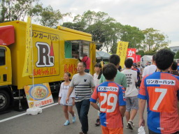 スタジアムグルメは、確かに数は充実していましたが、ここでなければ、という心惹かれるものはあまりありませんでした。ただ、ちゃんぽんの屋台が出ているのは、スポンサーがらみということもあるのでしょうが、長崎ならではだなと思いました。今日はゲームの後にちゃんぽんを食べる予定もあるし、このチェーン店は浜松や豊橋にもあるので、今回はパスです。 |
