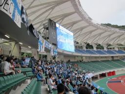 ゴール裏です。さすがに福岡からさらに2時間以上かかるという便の悪さ、そして旅費もかかるということから、サポはこれぐらいでした。ただ、数の割にはがんばって声を上げていたとは思います。 |