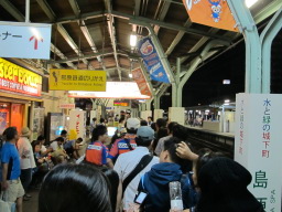 | 電車で20分ほど揺られたでしょうか、諫早に到着です。長崎市からは離れていますが、佐世保方面への鉄道の分岐点でもあり、また島原鉄道で雲仙方面からも鉄道がつながるということで、ある意味交通の要衝。観戦客は県内各地から来やすいのかもしれません。 |