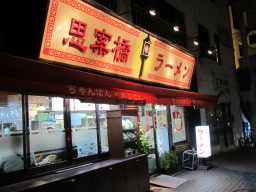 | 長崎市内に戻りました。失意の中であまり食欲もわきませんが、それでもせっかく長崎にいるので、ということでちゃんぽんを食べに、この夜も思案橋界隈に出ました。福山雅治が通う店として有名になった思案橋ラーメンです。店内には福山や大泉洋ら、有名人のサインがそこかしこに。カウンターとテーブルが数席という狭い店内です。家族風のおばちゃんやおじちゃんとその親子でまわしているというかんじでした。 |
