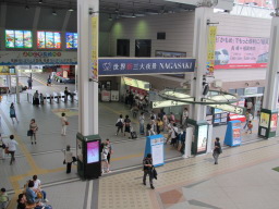 そして諫早駅に着けば、長崎行きの電車乗り場はこの混雑。だから長崎行きのバスなり何なりをもっと出せばいいのに。電車だって本数が少ない。臨時を出すとかすればいいのに。特急料金を払ってかもめ号の自由席に乗っていった人もかなりいました・・・。 |